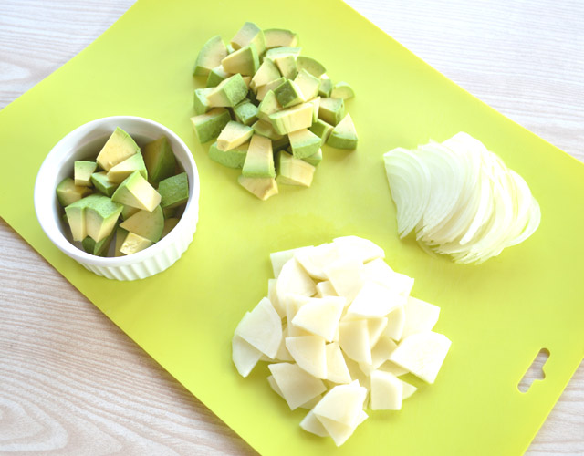 アボカドは細かく角切りにして、最後の飾り付け用に少し残しておきます。