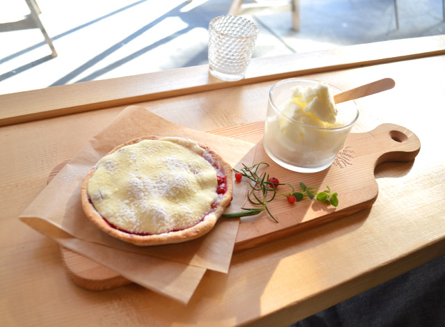 ベリーフラムクーヘンとジャージー牛乳のジェラード添え