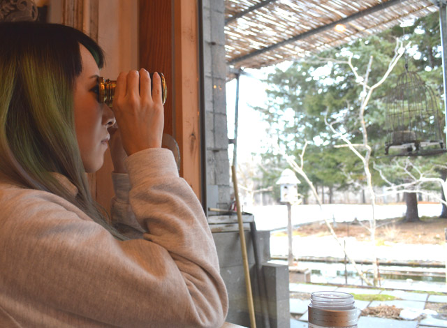 また、店内に双眼鏡が置いてあるので間近で野鳥の観察も楽しめました。