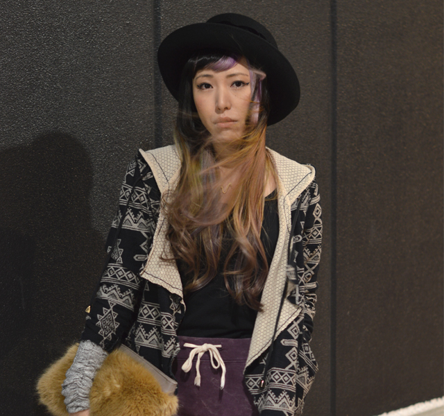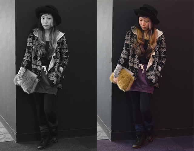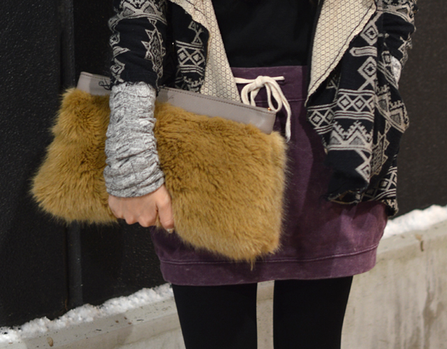 Banana Republicのフェイクファークラッチも手に持っていると