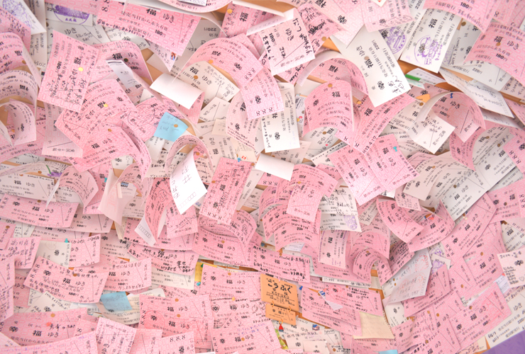 込めれている駅で、壁一面には色んな願いが書かれた幸福きっぷが貼られています。
