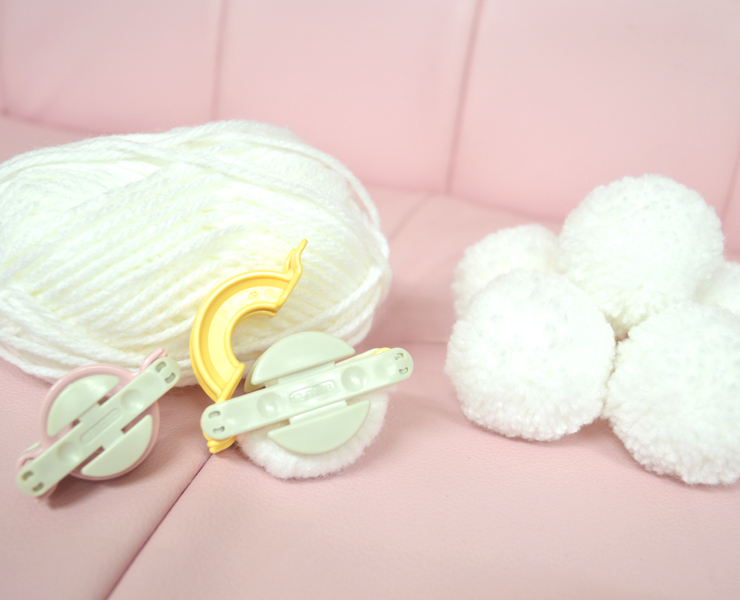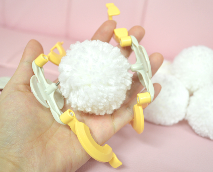 これを使うと、ぐるぐると巻きつけてカットするだけでキレイにポンポンが出来るよ。