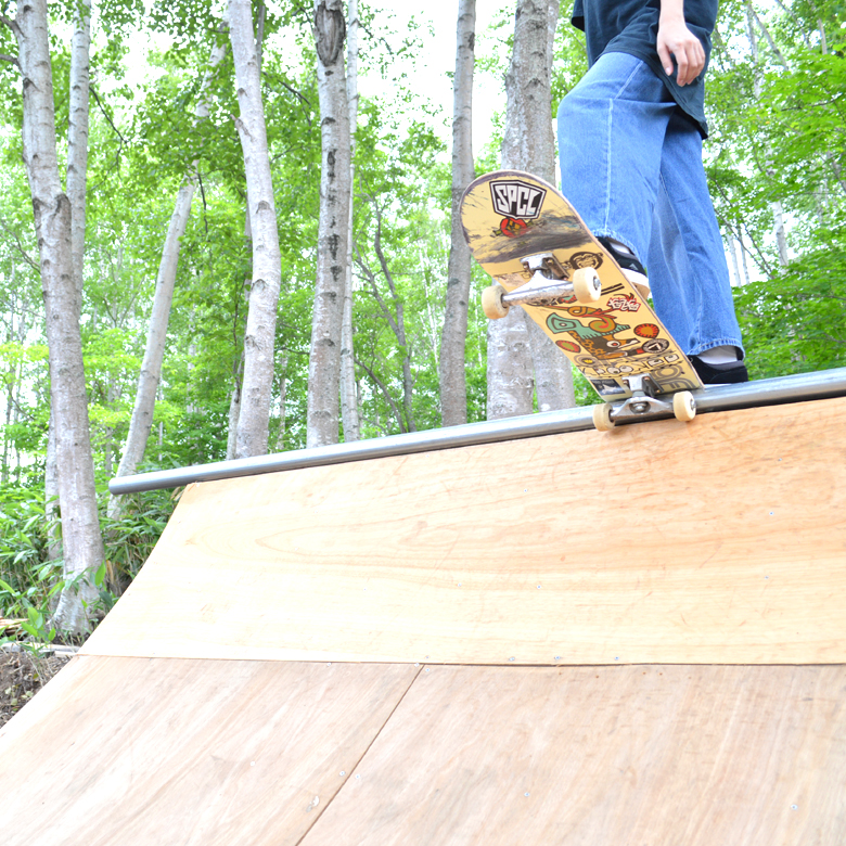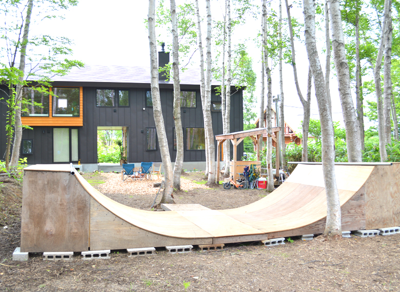 そして、白樺林に囲まれた庭にはスケートランプがあり