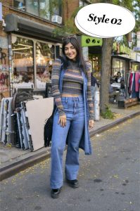 1. スタイル01の人のコーディネート好きだな。色合いが感じが良い。三つ編みの髪型がおしゃれ。