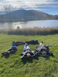 みんなで日向ぼっこをしに近くの湖畔へ☁️