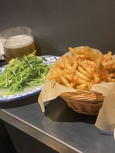 料理もいくつかあって、私が選んだのは桜海老のフライドポテトと豆苗炒め