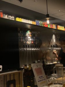 ドラフトビールからクラフトビールまで、たくさんの種類のビールが棚にズラ〜っと並んでいるのが印象的