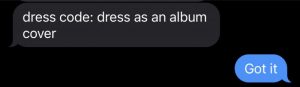 好きなアルバムのジャケ写や、アーティストを真似てドレスアップしてきて!と言われ、当日はみんなとってもドレッシーに💘