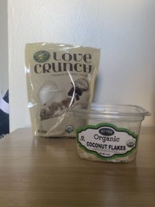 右のやつはアメリカのスーパーではどこでも売っているのですが、これはちょっとシナシナした食感で、ココナッツの繊維っぽい感じが強い気がするのでこのグラノーラと混ぜて食べてます!