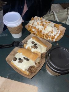 左手前が、ニューヨーク名物「フィリーチーズステーキ」それにトリュフをパラパラと!