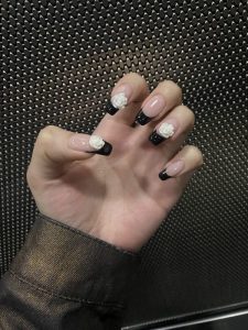 そして、白と黒のイメージからインスパイアを受けて、大人っぽさも残せる黒のフレンチネイルにしてみました