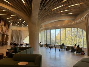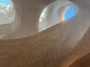 高い天井に吹き抜けの穴がたくさんあって、そこから差し込む光がとても良い