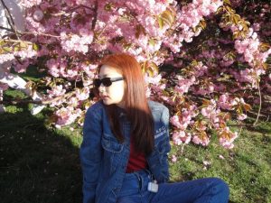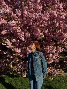 日本でよく見かけるのは、薄ピンク色の桜の木が主要だと思いますが、私が観たのは濃いめのピンク色が特徴的でした♡