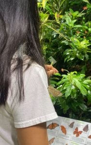 所々に、蝶々の給水所?みたいなのがあって、そこに沢山蝶々が集まっていたり、庭内の中にある植物にとまっていることもあって、本当にあちこちに蝶々が飛び交うような空間でした!