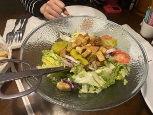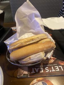 そして、どでかいシーザーサラダと無限に出てくるガーリックスティックが付いてくる