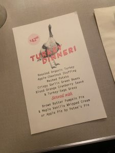この日は特別にサンクスギビングディナーのメニューがあり、ほとんどの人がやっぱりこれを目的にくる人ばかりでした