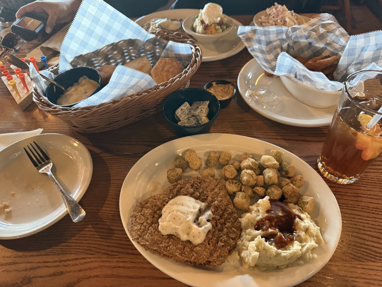クラッカーバレルではキャットフィッシュやミートローフ、シェパードパイなどいわゆるアメリカンフードがメインであって、私たちが頼んだのはカントリーフライドステーキというメニュー