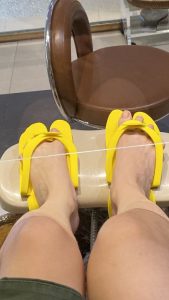 謎にチャッチーなサンダルを履かされて