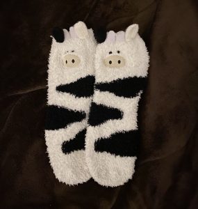 夜の寒暖差が激しいので、モコモコの靴下も持っていきます。