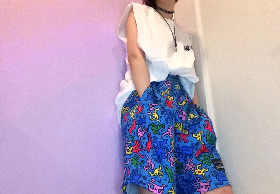 #KeithHaring の大胆総柄グラフィックのボトムでつくる、NYLON流スポーティルック! #SPALDING #OOTD