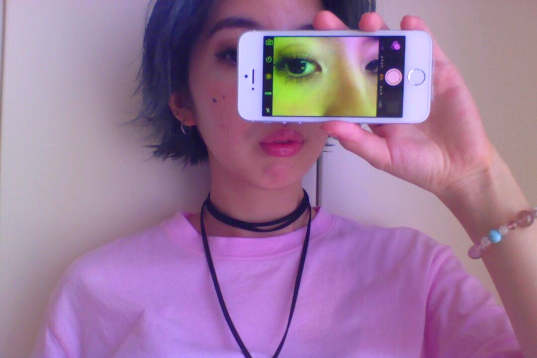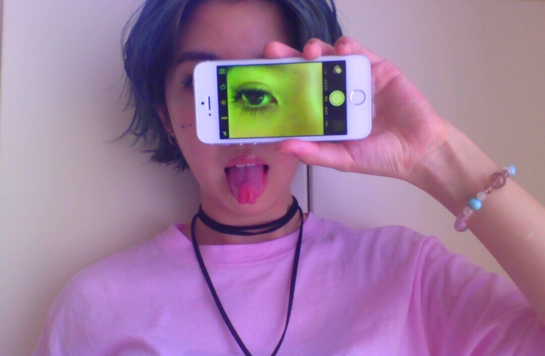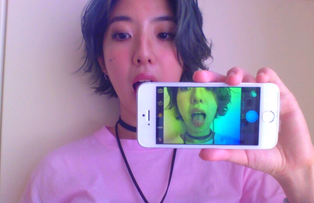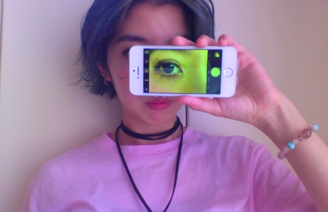 自分の顔の一部を接写して