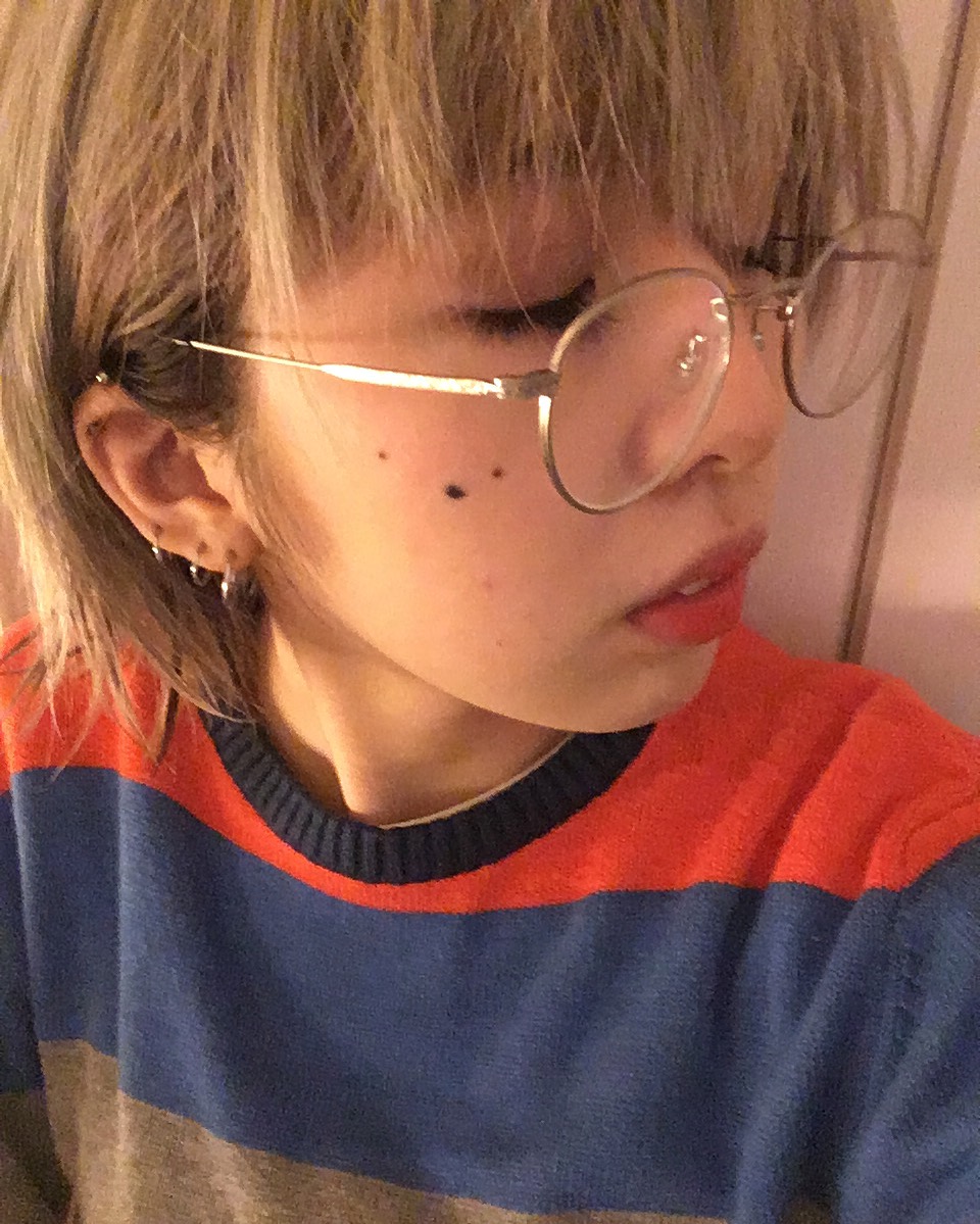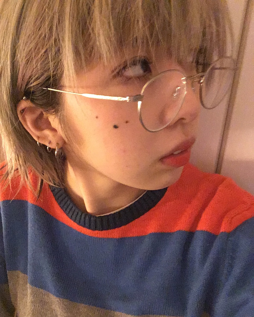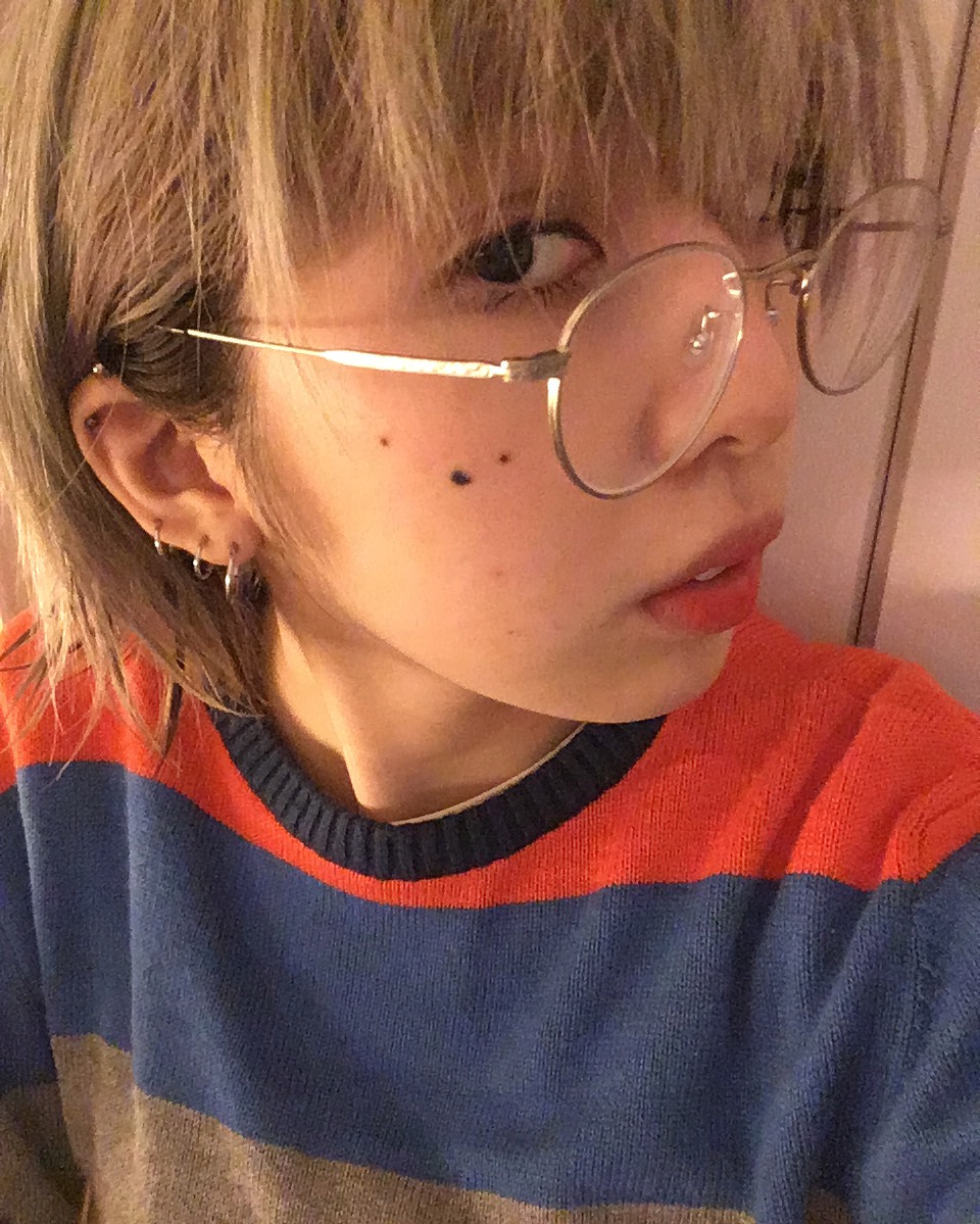 ハイトーン #HAIR × #NERD なメガネ × オレンジリップで外国のヤンチャなキッズ風。 #FASHION #MAKEUP