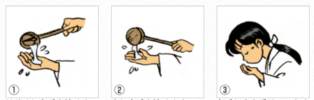 右手で柄杓を持ち、左手を流す