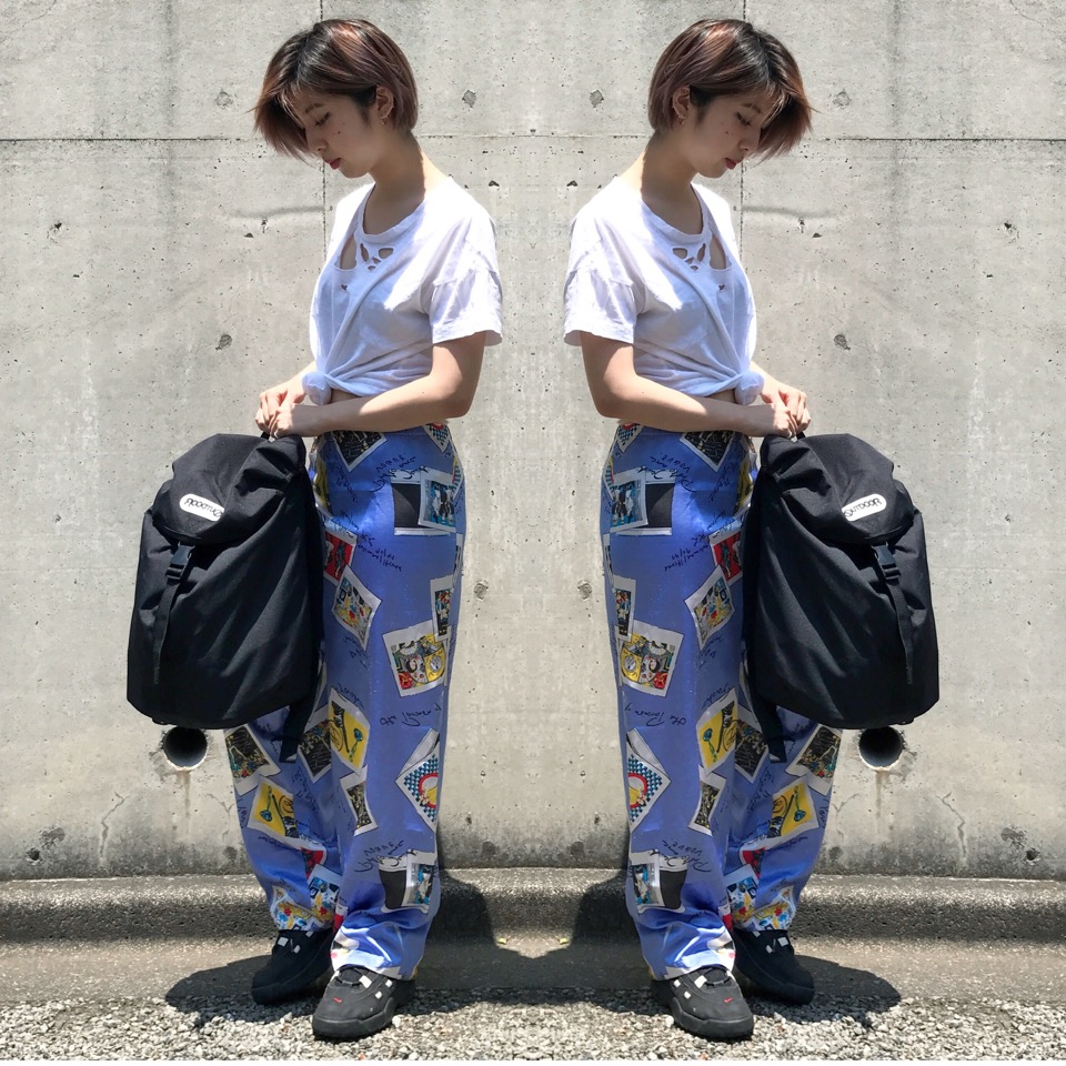 1つは持ってたい王道アイテムな #黒リュック !派手柄ボトムで遊び心をプラスしてこそNYLONISTA♡ #OUTDOORPRODUCTS