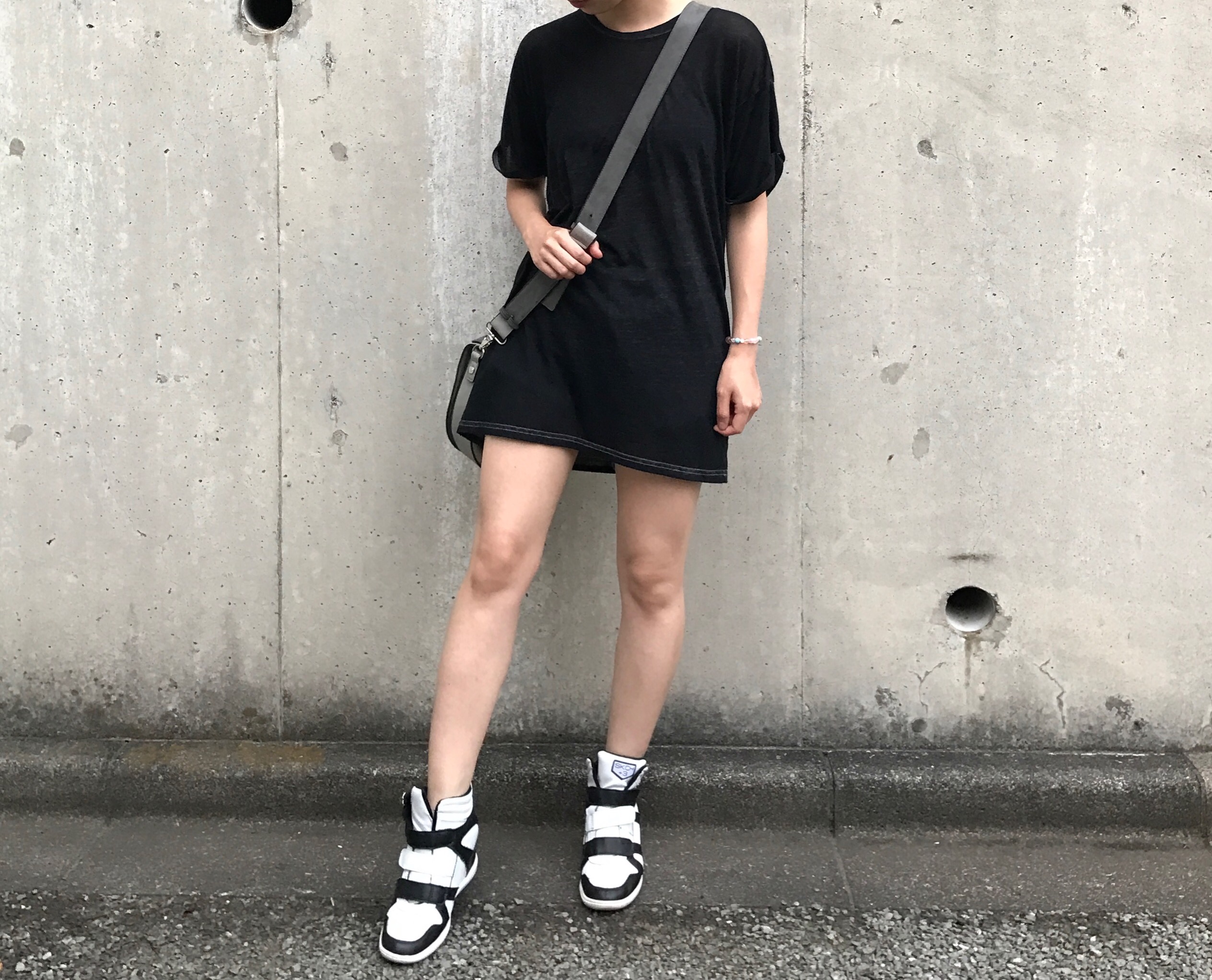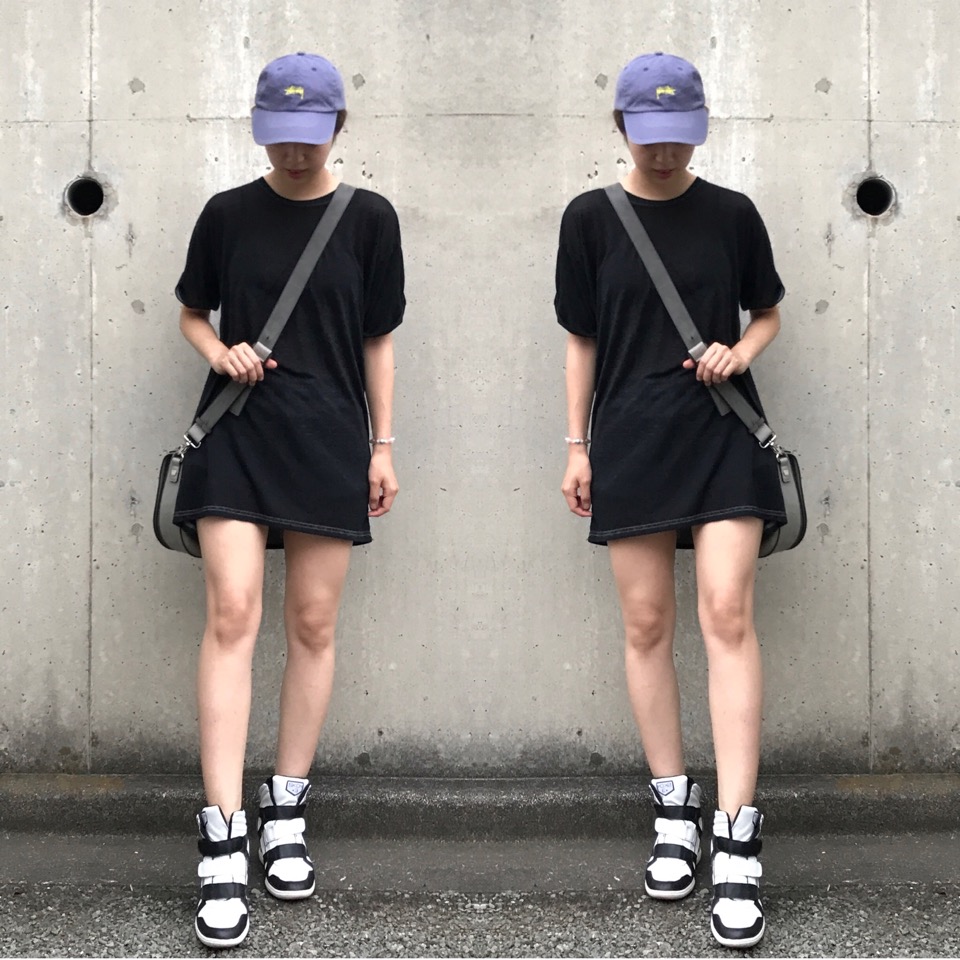 メンズサイズのTシャツをワンピースっぽく着る時に!意外と重要なのが #靴 選び…♡ #OOTD4NYLONJP