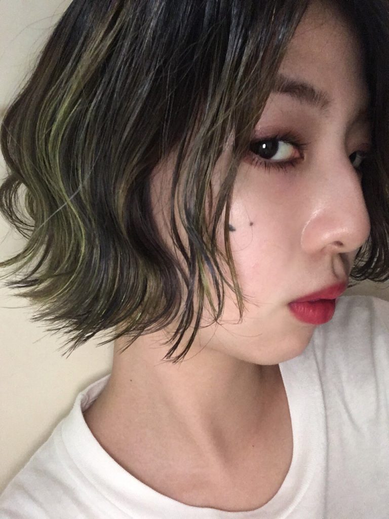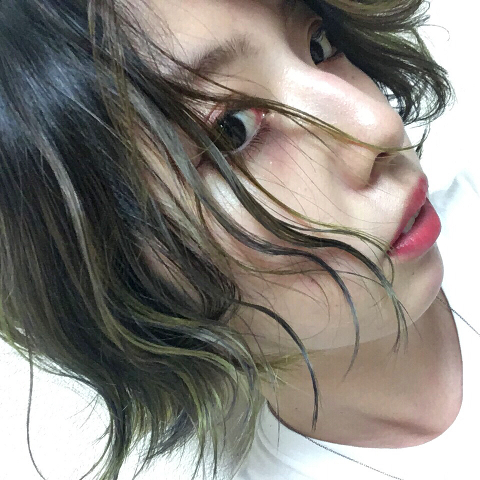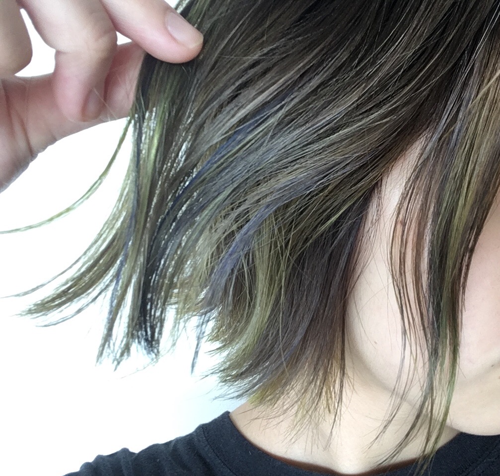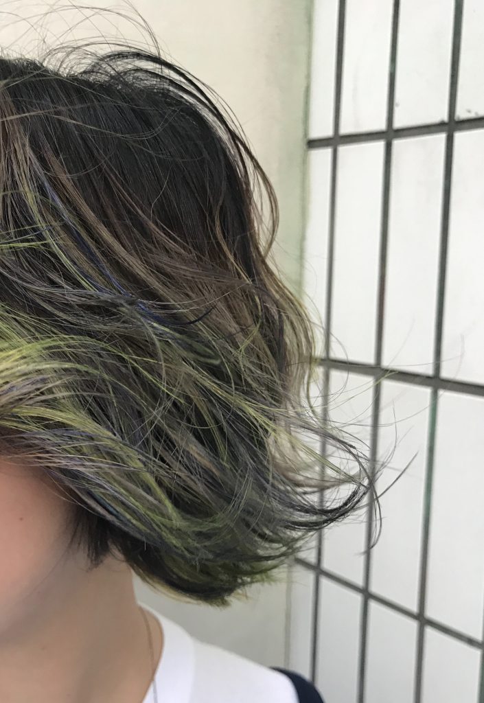 毛先を #NEONGREEN × #BLUE × #GRAY のMIXに♡ビビッドなカラーでも落ち着いた雰囲気を出したければこうオーダーすべし! #HAIRCOLOR