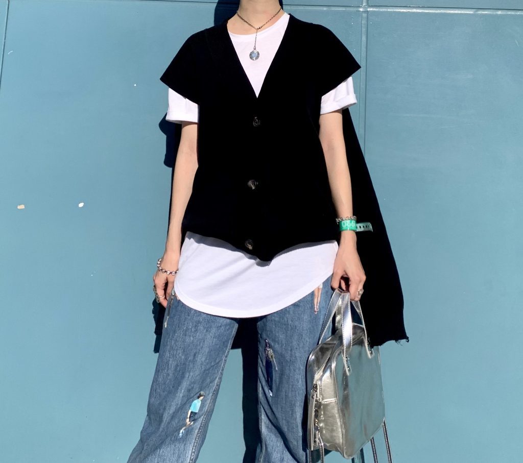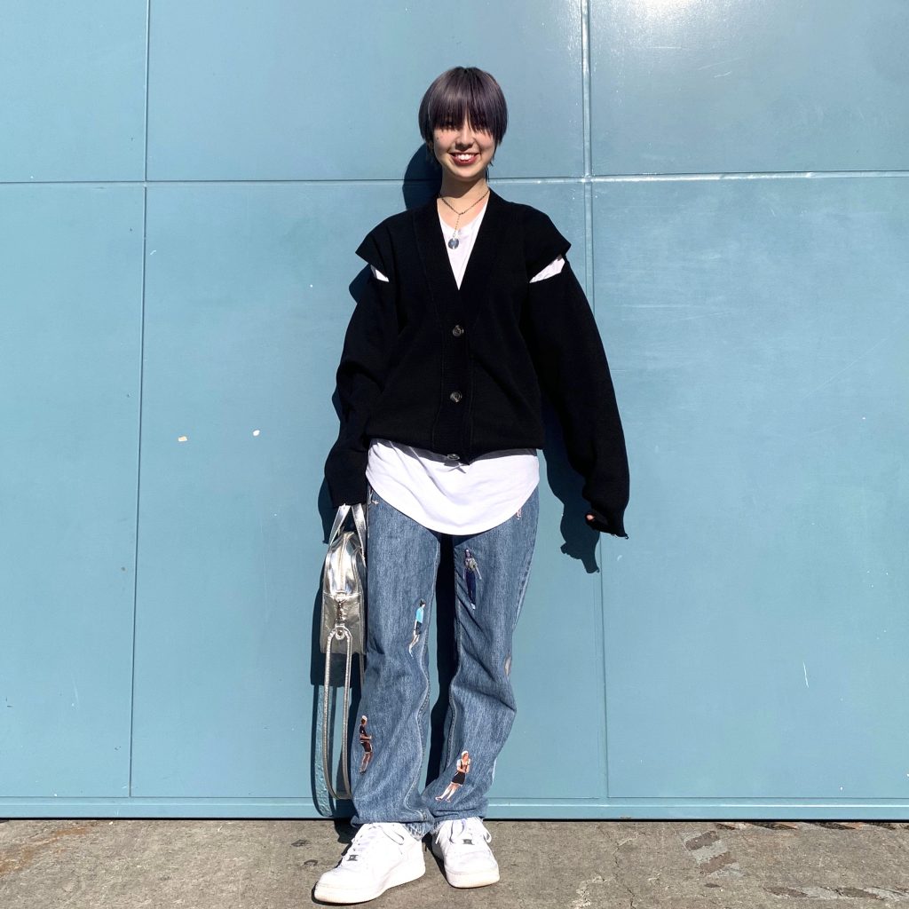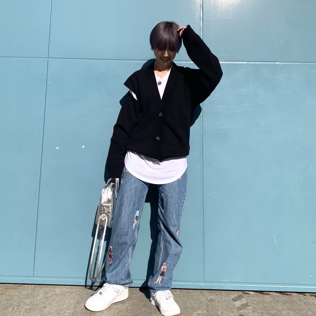 黒カーデ。