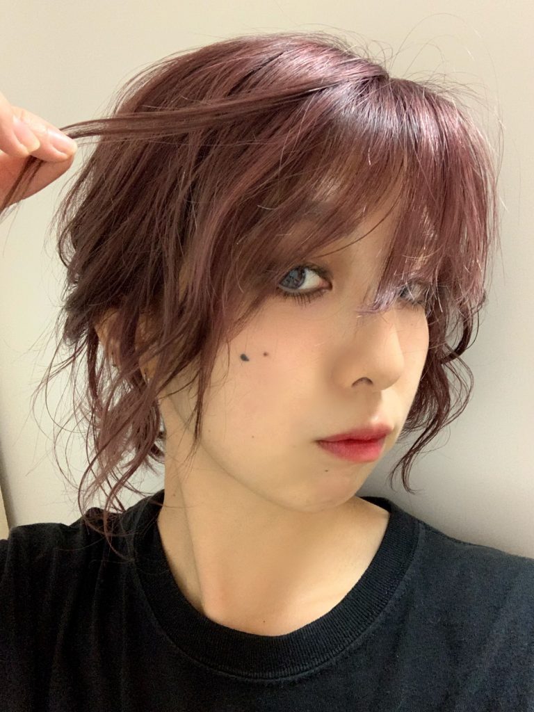 落ち着いた暗め #PINKHAIR × 薄め前髪にイメチェン♡ 秋冬コーデにも相性抜群です。 #NewHairNewMe