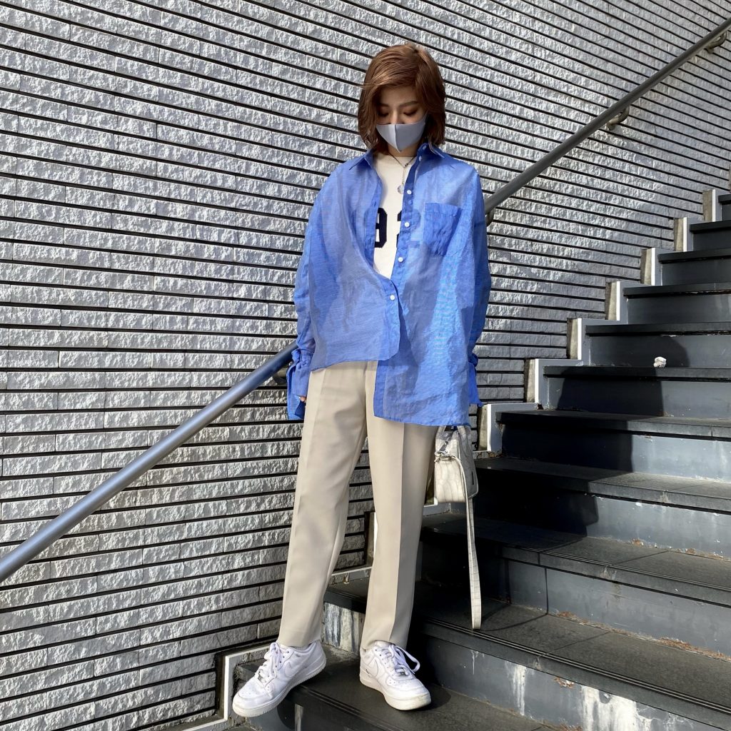 ビッグシルエットのシャツを重ねたよ 😎