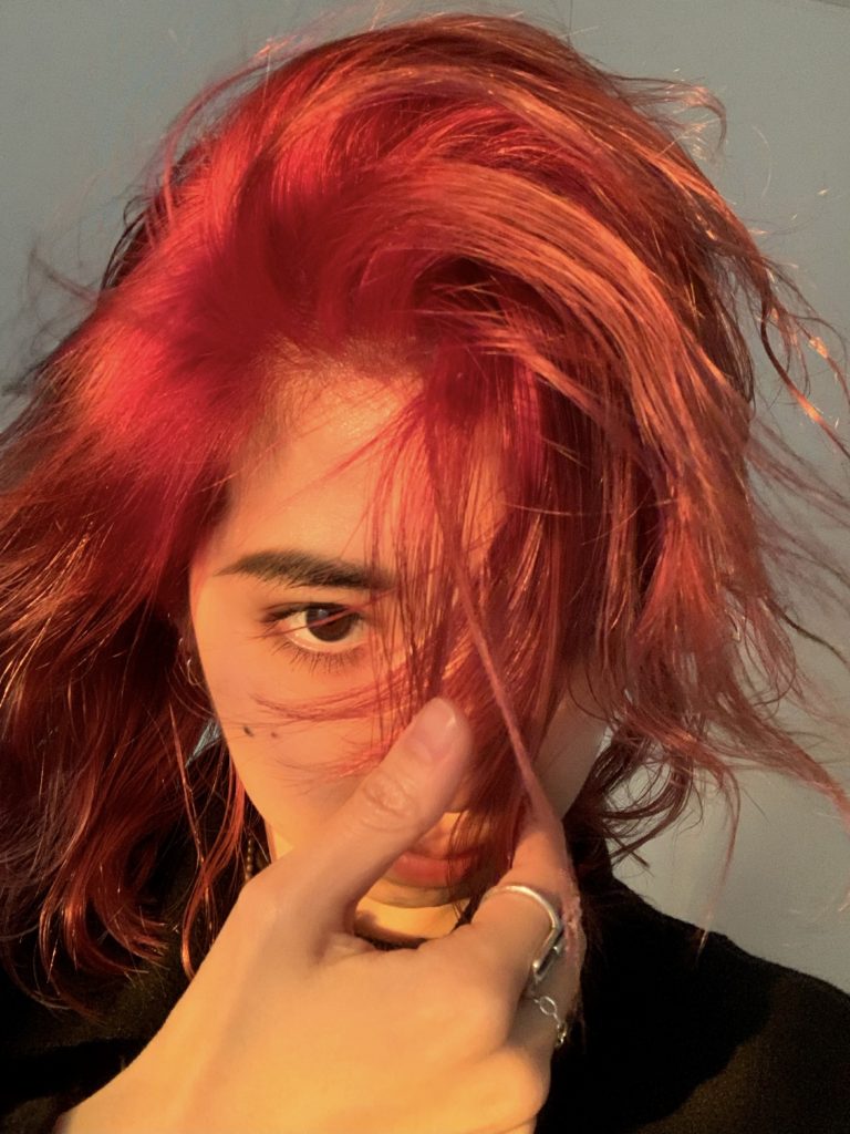 根元にショッキングピンクを注入しました 😎