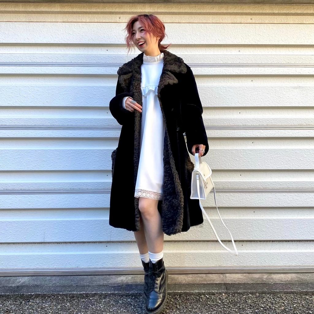ボリューミーなフェイクファーコート×甘めなワンピ×Dr.Martensのススメ❤︎ #OOTD4NYLONJP