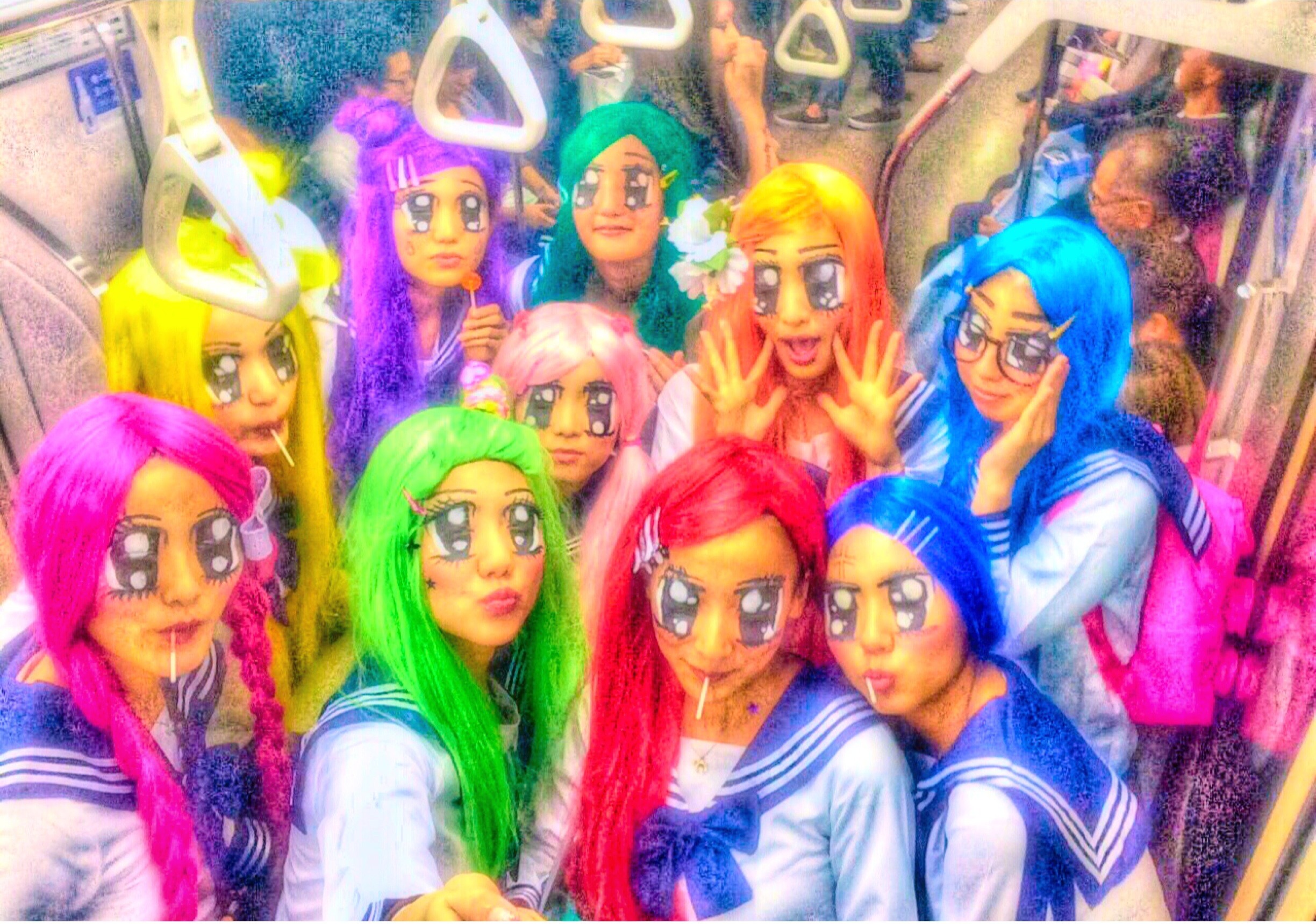 カラフルなウィッグをかぶり…