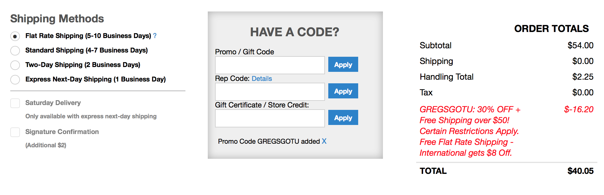 左の“Shipping Method”にて