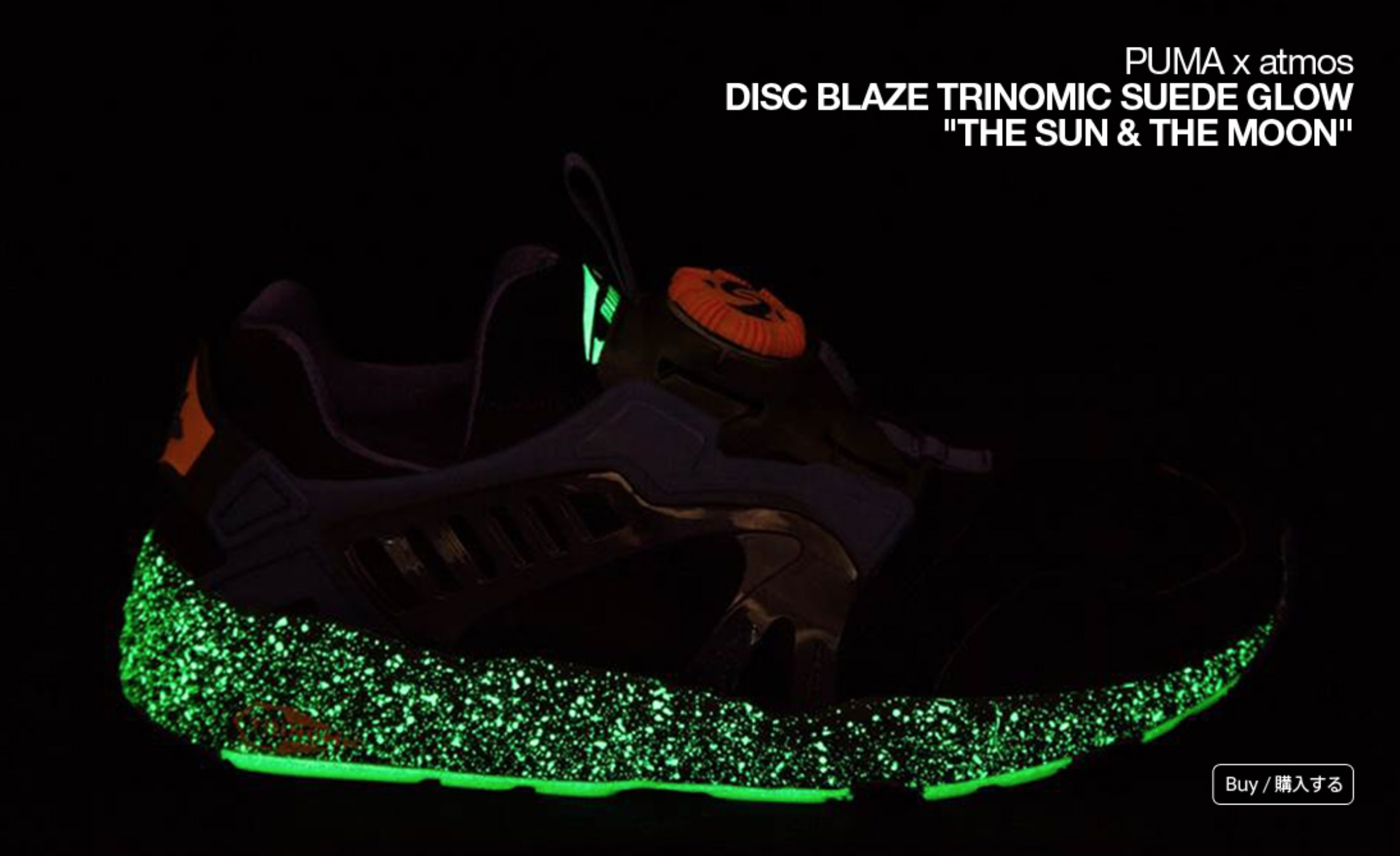 今 #PUMA のスニーカーがアツい。暗闇でグリーンに光る #DiscBlazeTrinomic をミリもさっそくGETしたよ! #XMAS #GIFT