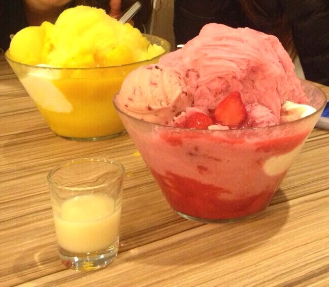 たっぷりの練乳をかけて。