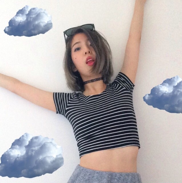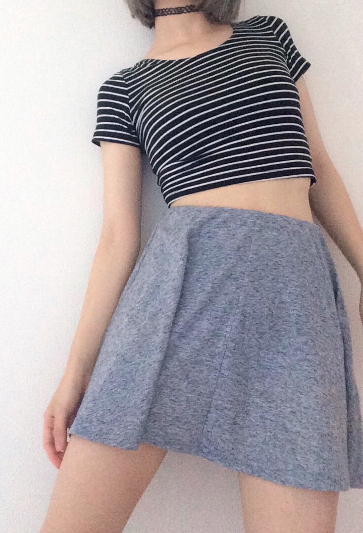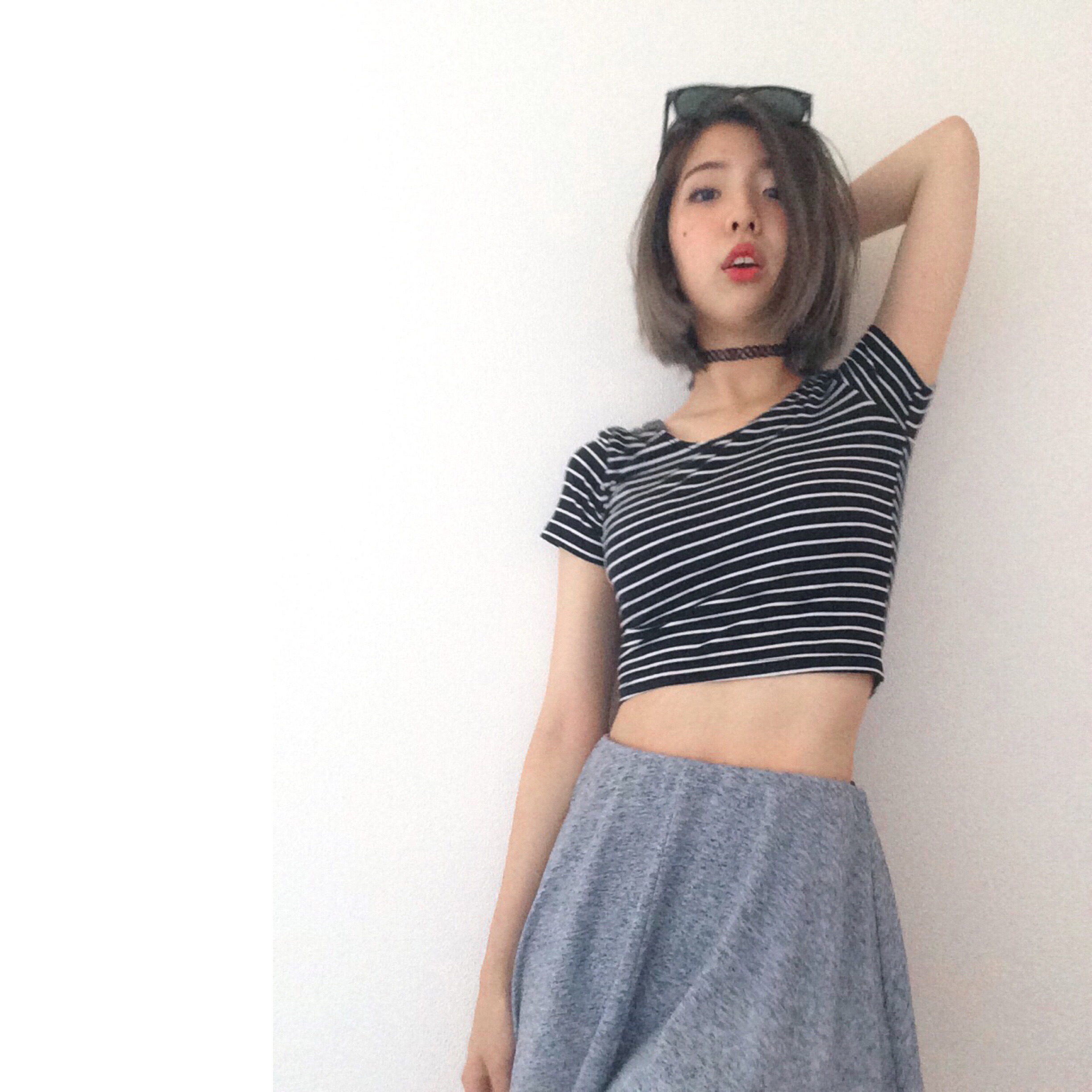 柄物の定番「ボーダー」はアメアパのクロップトップで!赤リップをプラスするのがポイント♡ #OOTDQUEEN