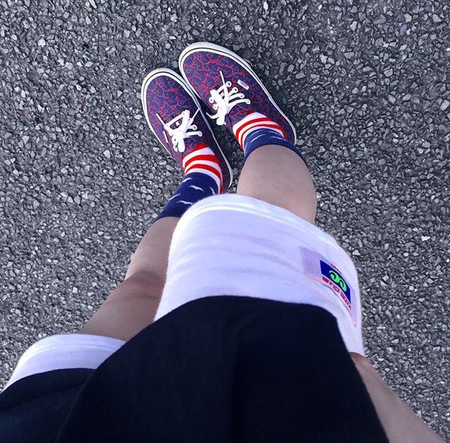 #AmericanFlag 柄の靴下 × #VANS でつくるスケータースタイル #OOTDQUEEN #KENZO