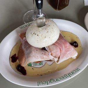 まず注文したのは、このクイニーアマンの上にチーズとハムが乗っている、超芸術的・・・?感動的なワンプレート‼︎