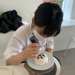 初めは真っ白のケーキなんですけど、こうやってチョコペンをくれて絵をかけるんですよね!