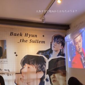 初めてこんなに身動き取れないイベントカフェに行きました。みんなベッキョンの除隊を心から喜んでる感じがして、私も知らずのうちに涙を目に浮かべておりました。