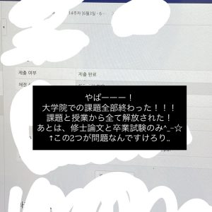 後期は修論に向けた研究のみを行う予定なので、実質、大学院生活、学生生活最後の課題が終わったということです。