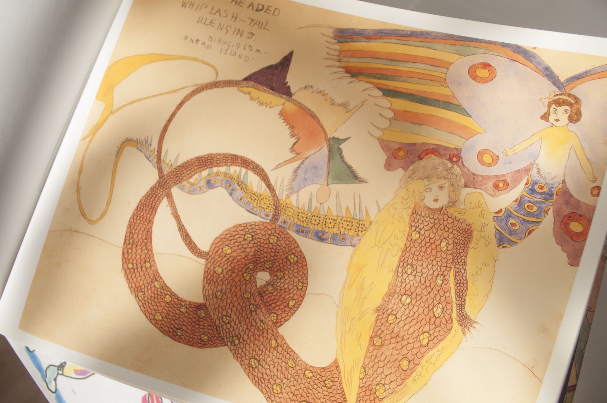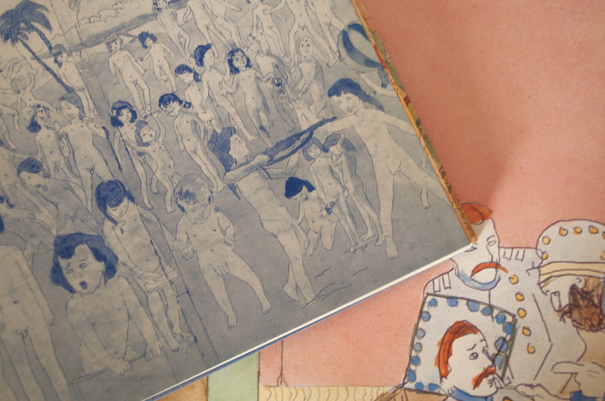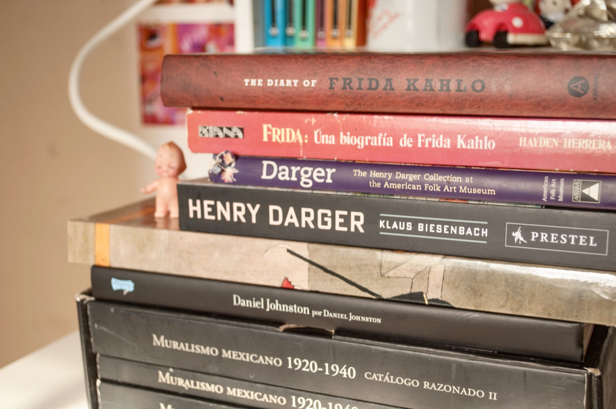 この本はヘンリー・ダーガーのもので、私は彼の絵が大好きなんだ。前回のアメリカ旅行で、このアーティストの本を3冊買ったんだ。”ストランド “という古本を扱う本屋なんだけど、そこのアート・コーナーはとても広くて、奇妙で素晴らしいタイトルを見つけることができる。