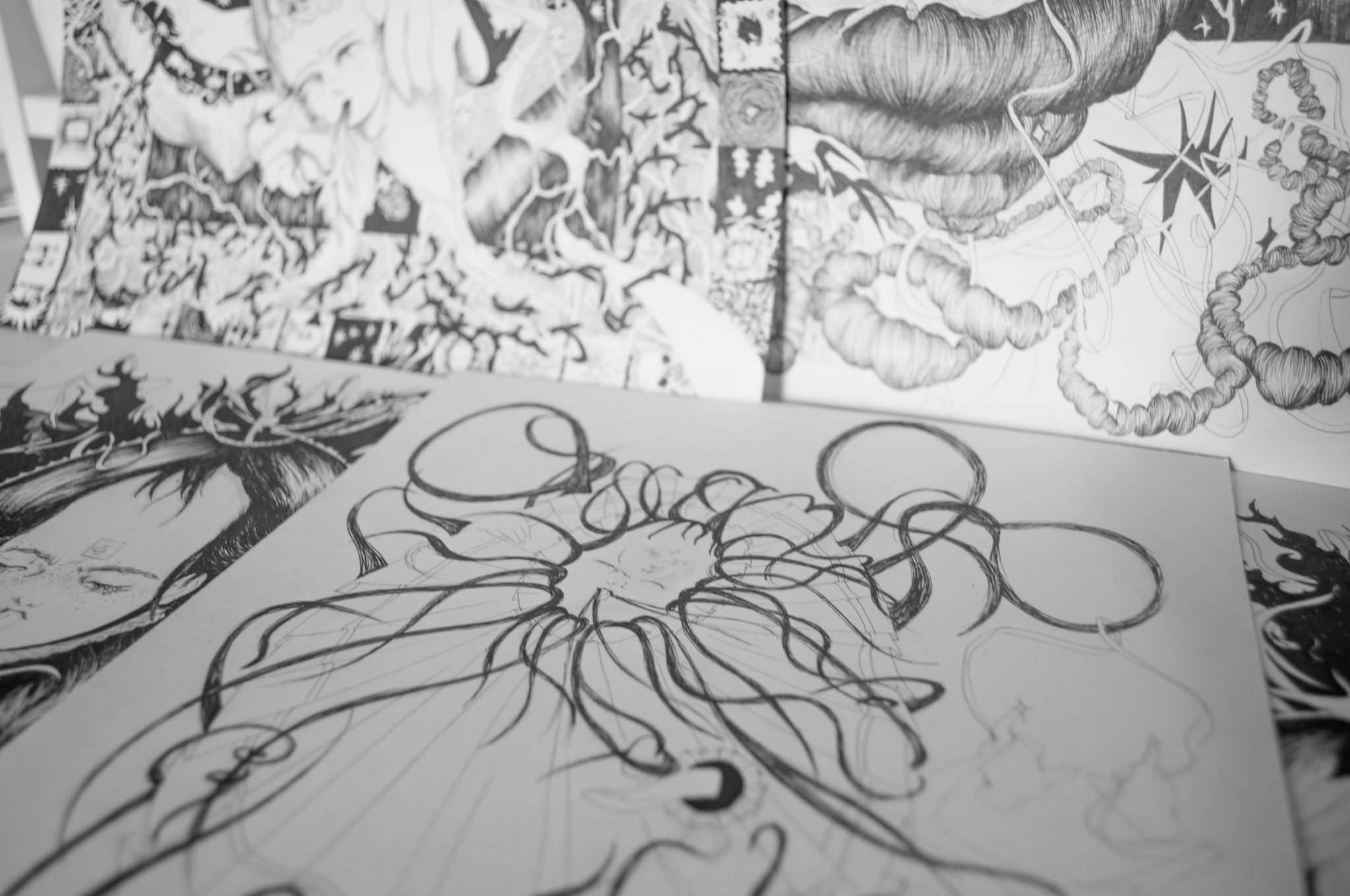 今、モノクロのドローイングのシリーズに取り組んでいるんだけど、自分の誕生日を祝うのに、自分の好きなことをする以上の方法はないと思うんだ。