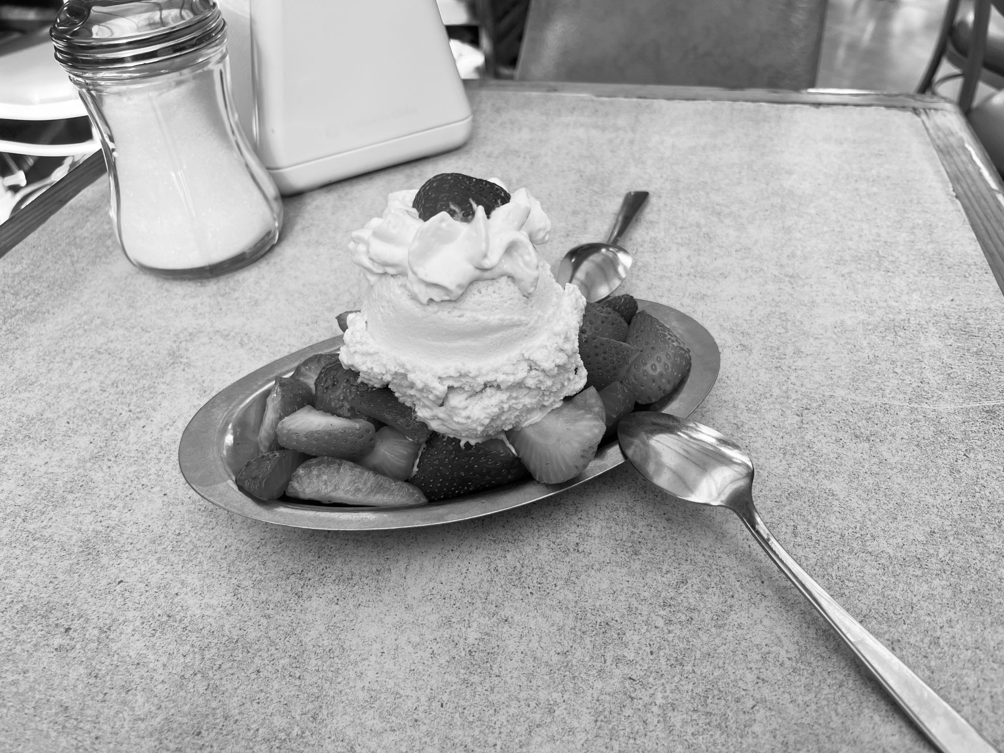 食事とデザートは、とてもおしゃれで伝統的な店を選び、デザートはアメリカのダイナーのような伝統的なアイスクリーム屋で、ストロベリーアイスクリームを注文した!