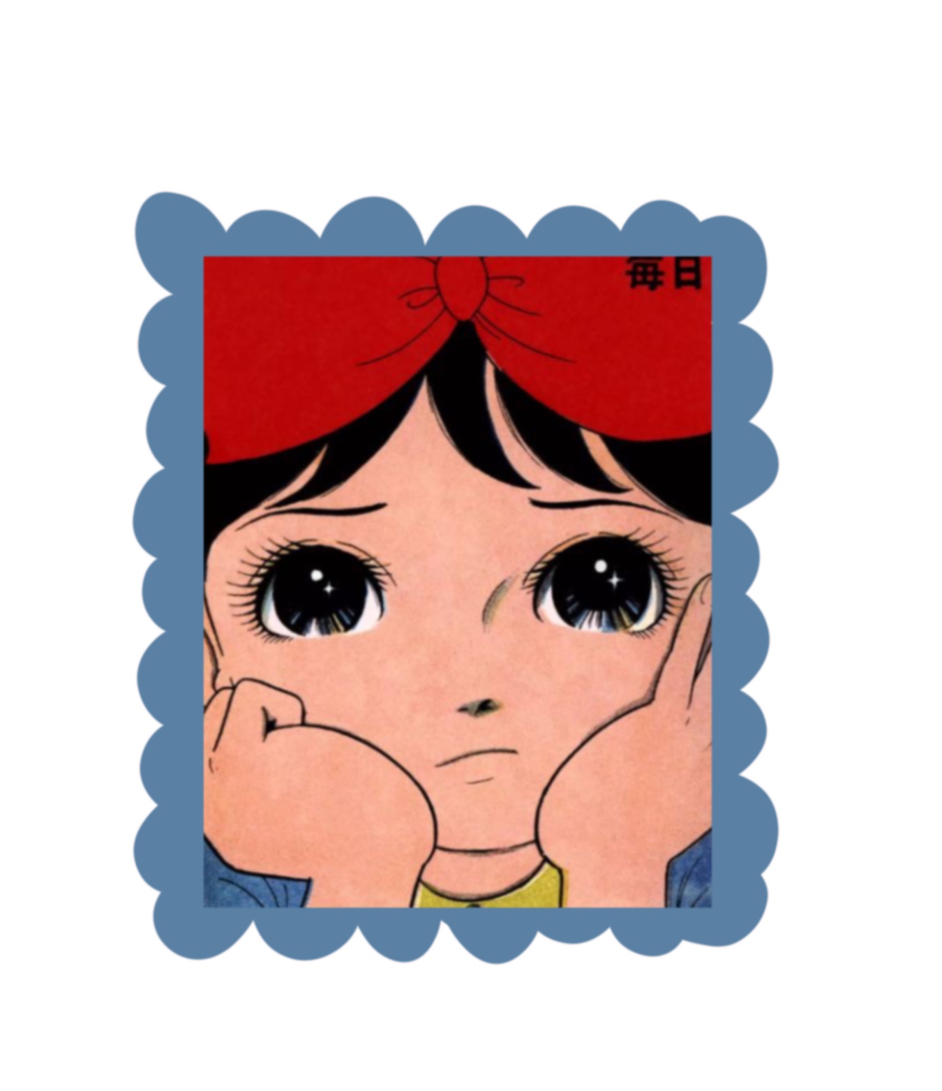 私はこの少女の表情と大きな赤いリボンに共感する。