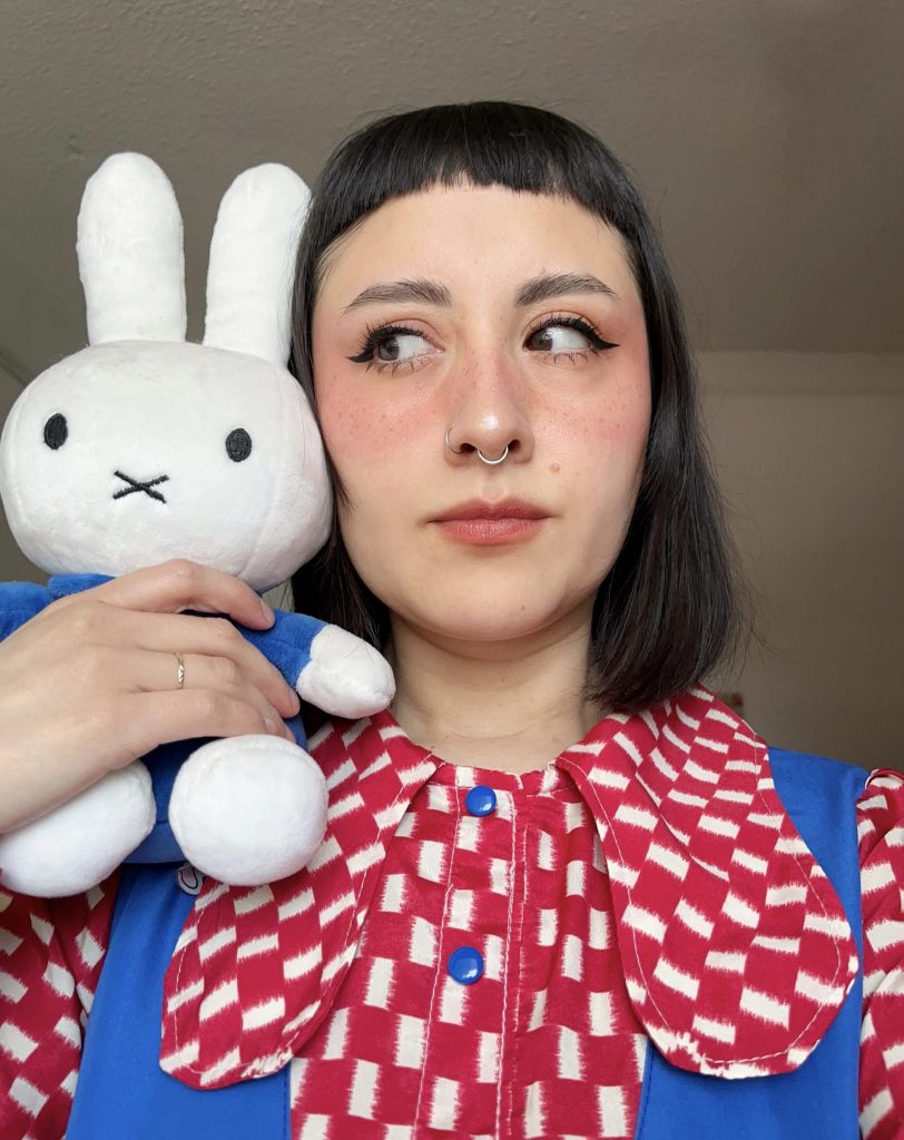 MIFFYにこの美しいヴィンテージドレスを合わせることができて嬉しい。 今日はうさぎのようにカワイイ気分。
